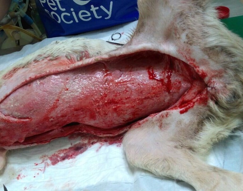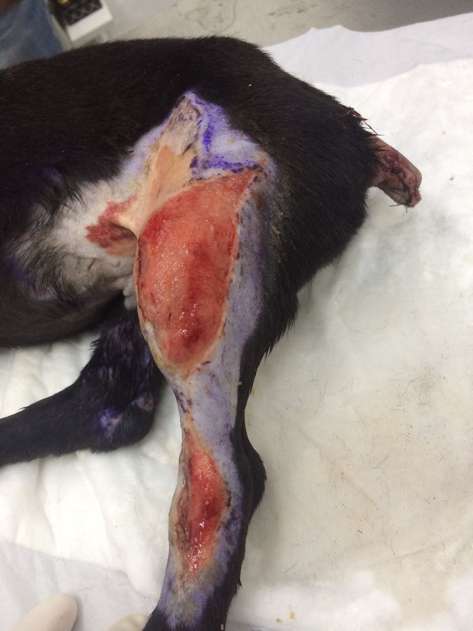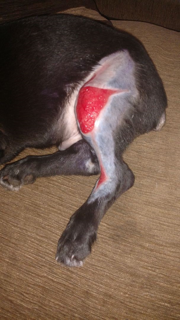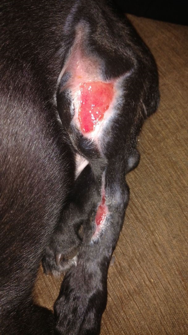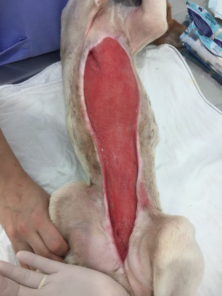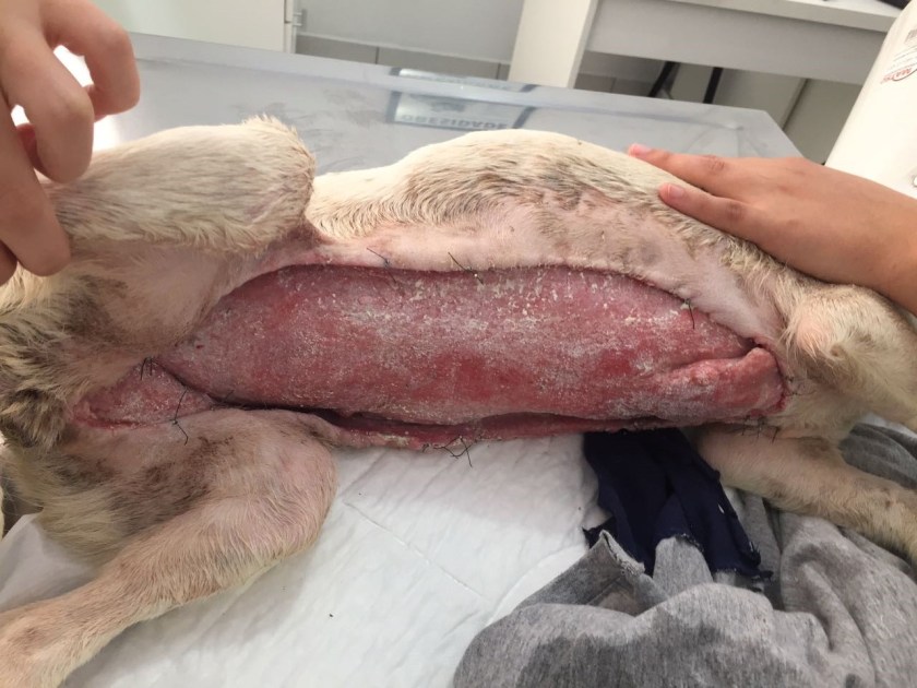 Parecer médico-veterinário: Foi observado uma rápida evolução inicial, o que chamou atenção, pelo fato da ferida reduzir 1cm ao dia. Após 3 meses de tratamento, optou-se pelo produto mais concentrado, para estimular a cicatrização total da ferida.