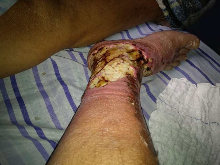 Etiologia da Lesão: Deiscência pós amputação transfemural de membro (perna esquerda).