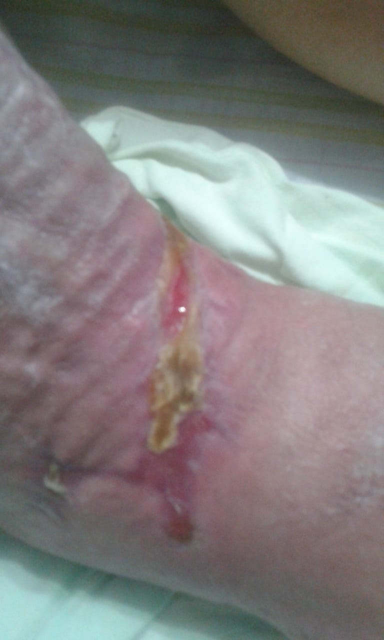 Parecer clínico: Após 76 dias de tratamento a ferida encontra-se 100% cicatrizada, surpreendendo a todos com excelente resultado apresentado.